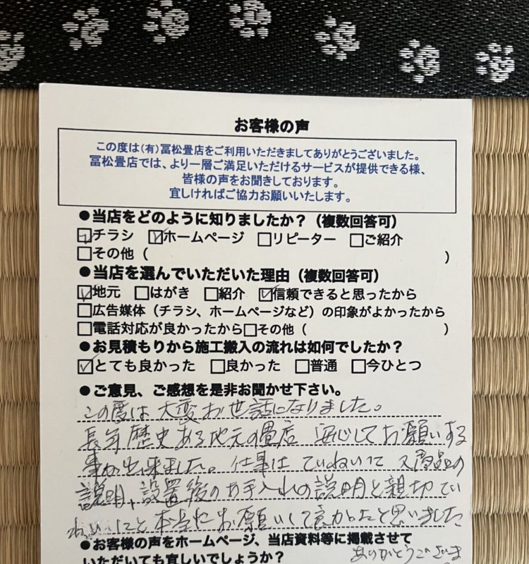 先日、当店で畳替えを行なったお客様より大変嬉しいお声をいただきました!