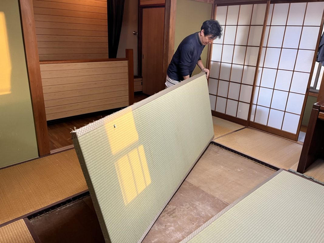 大きいサイズで京間と呼ばれる195cm×191cmの畳のサイズなどもあるのですが、この畳は当店の店主も『こんなに大きい畳はなかなかない』と気合を入れての搬入・搬出作業となりました。