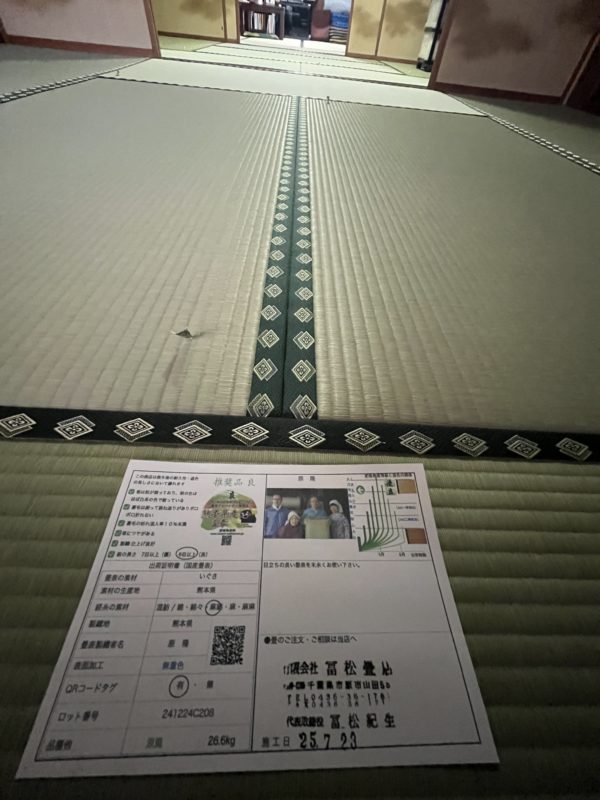 前回の一間に引き続き、今回は二間を原さん(いぐさ生産者さん)の畳表で承りました。