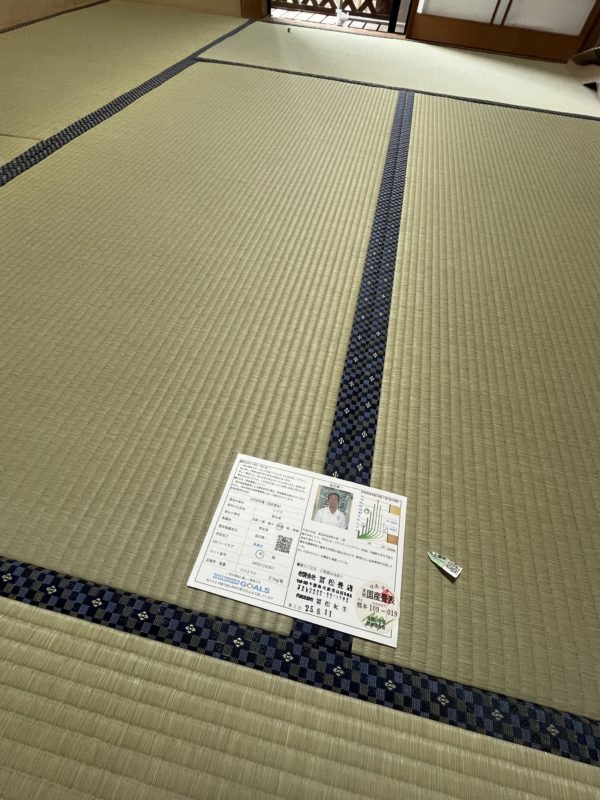 今回、ご用命を承りましたI様邸では、坂田眞一さんの”ひのさやか”と呼ばれるブランド畳表を使用いたしました。